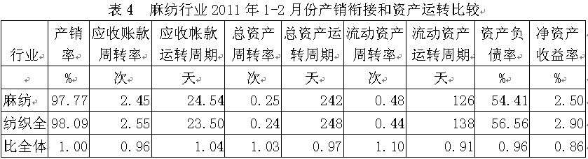 4麻紡行業(yè)產(chǎn)銷銜接和資產(chǎn)運(yùn)轉(zhuǎn)情況