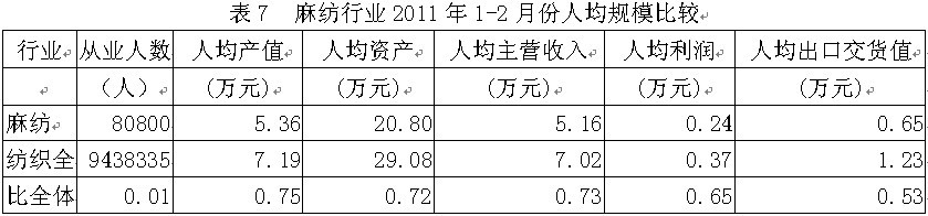 7麻紡行業(yè)人均規(guī)模比較