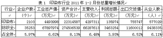 2011年1-2月印染布行業(yè)經(jīng)濟(jì)運(yùn)行分析