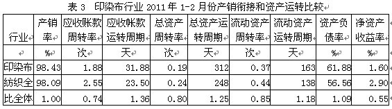 3印染布行業(yè)產(chǎn)銷銜接和資產(chǎn)運(yùn)轉(zhuǎn)情況