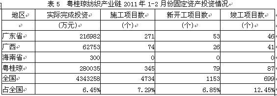 5粵桂瓊紡織產(chǎn)業(yè)鏈固定資產(chǎn)投資情況