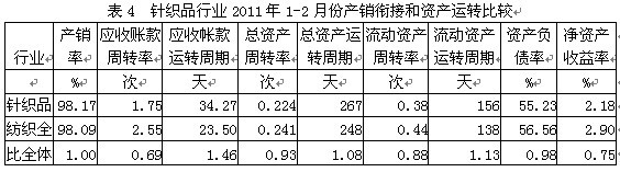 4針織品行業(yè)產(chǎn)銷銜接和資產(chǎn)運(yùn)轉(zhuǎn)情況