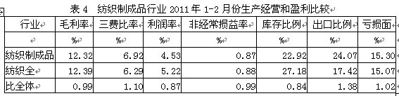 4紡織制成品行業(yè)生產(chǎn)經(jīng)營(yíng)和盈利狀況