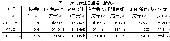 2011年1-3月麻紡行業(yè)經(jīng)濟(jì)運(yùn)行分析