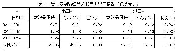 3麻制紡織服裝進(jìn)出口情況