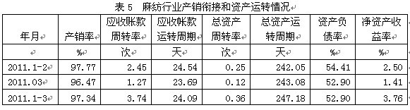 5麻紡行業(yè)產(chǎn)銷銜接和資產(chǎn)運(yùn)轉(zhuǎn)情況