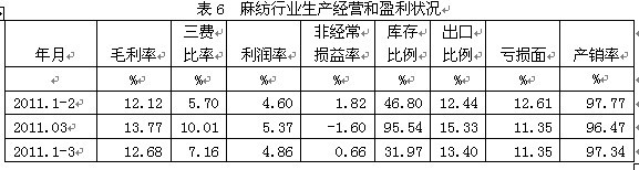 6麻紡行業(yè)生產(chǎn)經(jīng)營(yíng)和盈利狀況