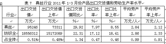 7真絲行業(yè)產(chǎn)品出口交貨值和勞動生產(chǎn)率水平