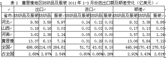 2冀晉豫紡織品服裝進(jìn)出口變化
