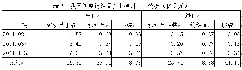 3絲制紡織品服裝進(jìn)出口情況
