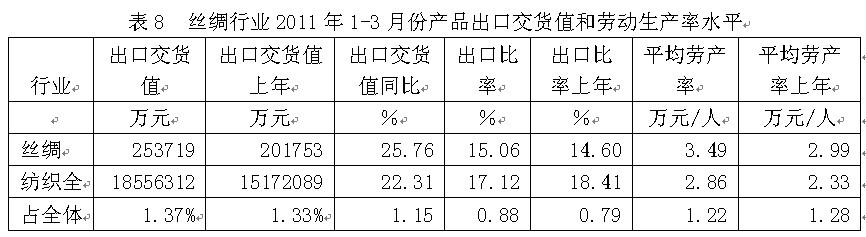 8絲綢行業(yè)產(chǎn)品出口交貨值和勞動(dòng)生產(chǎn)率水平