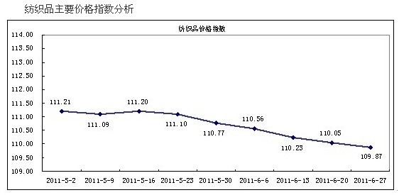“中國·柯橋紡織指數(shù)”20110627期價(jià)格指數(shù)收盤于109.87點(diǎn),與上期相比下跌了0.16%。 本期價(jià)格指數(shù)與去年同比上調(diào)14.46%。本期從一級(jí)分類品種中顯示:原料類、坯布類、服裝面料類價(jià)格指數(shù)不等量下跌,拉動(dòng)總類價(jià)格指數(shù)小幅下滑;但家紡類、服飾輔料類價(jià)格指數(shù)不等量回升,相對(duì)制約了總類價(jià)格指數(shù)的下跌幅度。 本周價(jià)格指數(shù)運(yùn)行情況分析 油價(jià)續(xù)跌聚酯切片價(jià)格走軟,棉花價(jià)格小幅下滑。6月17日紐約商品交易所輕質(zhì)原油7月期貨收?qǐng)?bào)93.01美元/桶,至6月24日8月期貨收?qǐng)?bào)91.16美元/桶;6月17日倫敦北海布倫特原油8月期貨收于113.21美元/桶,至6月24日收?qǐng)?bào)105.12美元/桶。國際原油價(jià)格繼續(xù)下滑,上游聚酯原材料市場(chǎng)價(jià)格走軟,例如PTA華東市場(chǎng)現(xiàn)貨較低商談價(jià)6月17日在9450元/噸,至6月24日在9200元/噸;MEG華東市場(chǎng)現(xiàn)貨較低商談價(jià)6月17日在9470元/噸,至6月24日在9450元/噸。江浙半光切片現(xiàn)貨現(xiàn)款承兌較低商談價(jià)6月17日在11975元/噸,6月24日在11850元/噸,價(jià)格呈現(xiàn)小幅下滑走勢(shì)。國內(nèi)棉花價(jià)格下跌,例如國內(nèi)328級(jí)棉6月17日收?qǐng)?bào)24508元/噸,至6月24日收?qǐng)?bào)24421元/噸,下跌87元/噸;229級(jí)棉6月17日收?qǐng)?bào)26541元/噸,至6月24日收?qǐng)?bào)26436元/噸,下跌105元/噸。 外單轉(zhuǎn)移國際環(huán)境不容樂觀,浙江電力供需基本平衡。國際經(jīng)濟(jì)環(huán)境不容樂觀。從國際環(huán)境看,美國和日本經(jīng)濟(jì)疲弱不堪,難以提振人們信心,歐債危機(jī)隨時(shí)可能成為全球新一輪金融風(fēng)險(xiǎn)的引爆點(diǎn),人們對(duì)全球經(jīng)濟(jì)二次探底的擔(dān)憂并末消除。歐洲債務(wù)危機(jī)對(duì)美國的潛在影響可能達(dá)到次貸危機(jī)的水平。生產(chǎn)成本、人力成本的增加和人民幣升值壓力更是讓紡織服裝訂單流失,一些訂單向越南、孟加拉、印尼等東南亞國家轉(zhuǎn)移。國內(nèi)銀根緊縮,中小紡企融資難度加大。中國紡織工業(yè)協(xié)會(huì)孫瑞哲副會(huì)長在2011年6月22日全球紡織經(jīng)濟(jì)高峰論壇發(fā)言公開表示,紡織品出口退稅近期不會(huì)下調(diào)。最近浙江電力供需基本平衡。目前浙江省有序用電工作協(xié)調(diào)小組決定取消全省有序用電方案,隨著省內(nèi)機(jī)組檢修結(jié)束陸續(xù)并網(wǎng)發(fā)電,全省統(tǒng)調(diào)供電能力已達(dá)3880萬千瓦。近期全省普降大到暴雨,非統(tǒng)調(diào)水電大發(fā),加上天氣涼爽,統(tǒng)調(diào)用電需求有所回落,電力供需基本平衡。短期內(nèi)全省電力供需基本平衡。電力部門表示,將根據(jù)實(shí)際用電情況,及時(shí)調(diào)整有序用電方案。 服裝面料價(jià)格指數(shù)小幅下跌,夏季大眾面料成交下滑。近期,輕紡城市場(chǎng)營銷滯暢互現(xiàn),服裝面料價(jià)格指數(shù)小幅下跌,大眾面料成交回縮,但創(chuàng)意面料依然夏秋品種互動(dòng)。服裝面料中的純棉面料、滌棉面料、滌粘面料、滌錦面料、粘膠面料、粘毛面料、錦綸面料、錦棉面料成交量價(jià)呈現(xiàn)不等量下滑走勢(shì),拉動(dòng)服裝面料價(jià)格指數(shù)小幅下滑。夏裝大眾面料現(xiàn)貨成交繼續(xù)回縮,創(chuàng)意花型面料營銷優(yōu)勢(shì)仍存,滌綸FDY噴織印花雪紡、118DFDY針織印花兩面彈T恤布和人棉布大眾花型現(xiàn)貨成交局部繼續(xù)回縮,部分中小經(jīng)營戶現(xiàn)貨成交仍顯不足,但一些前店后廠式布業(yè)公司和規(guī)模性經(jīng)營門市創(chuàng)意花型面料依然夏秋品種互動(dòng),秋裝面料局部下單有增。 下周價(jià)格指數(shù)展望 預(yù)計(jì)后市傳統(tǒng)交易區(qū)和公司化交易區(qū)面料成交仍將夏秋品種互動(dòng),預(yù)計(jì)后市夏秋創(chuàng)意面料營銷仍將局部走暢。因外需不足,內(nèi)需提振乏力,夏日常規(guī)淡季已為期不遠(yuǎn),后市服裝面料和家紡面料部分中小經(jīng)營戶大眾現(xiàn)貨成交仍顯疲乏,價(jià)格指數(shù)明顯攀升仍顯乏力。 本期襯料類、床上用品類、線繩類、日用家紡類、滌綸面料類價(jià)格指數(shù)漲幅位于前五位,銷量比上期不等量增加,部分代表品單價(jià)不等量上揚(yáng)是主要因素。 本期錦棉面料類、粘膠類、純棉面料類、粘毛面料類、花邊類價(jià)格指數(shù)跌幅位于前五位,成交量比上期不等量下滑,部分代表品單價(jià)不等量下滑是主要因素。