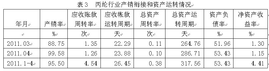 3丙綸行業(yè)產(chǎn)銷銜接和資產(chǎn)運(yùn)轉(zhuǎn)情況
