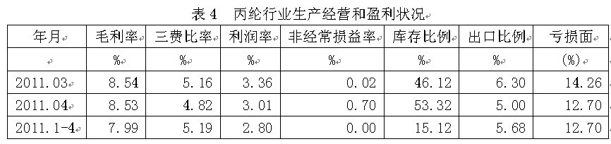 4丙綸行業(yè)生產(chǎn)經(jīng)營(yíng)和盈利狀況