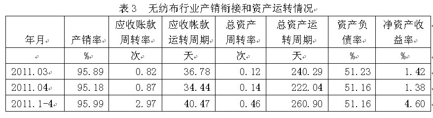 3無(wú)紡布行業(yè)產(chǎn)銷銜接和資產(chǎn)運(yùn)轉(zhuǎn)情況