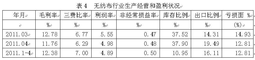4無(wú)紡布行業(yè)生產(chǎn)經(jīng)營(yíng)和盈利狀況