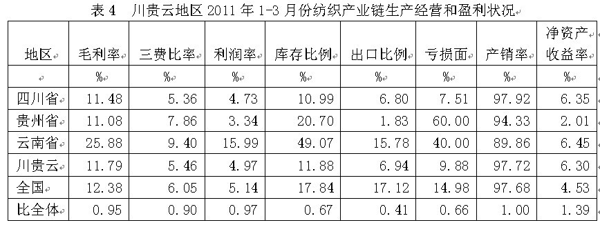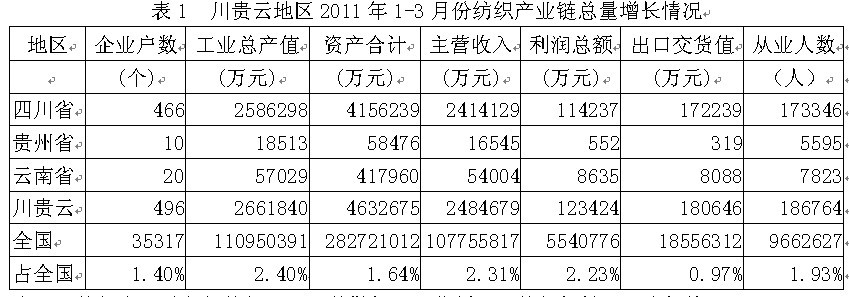 2011年1-3月川貴云紡織產(chǎn)業(yè)鏈經(jīng)濟運行分析