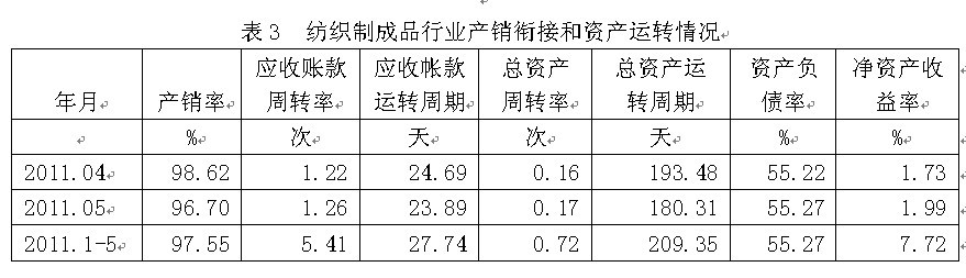 3紡織制成品行業(yè)產(chǎn)銷銜接和資產(chǎn)運轉(zhuǎn)情況