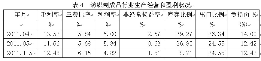 4紡織制成品行業(yè)生產(chǎn)經(jīng)營和盈利狀況
