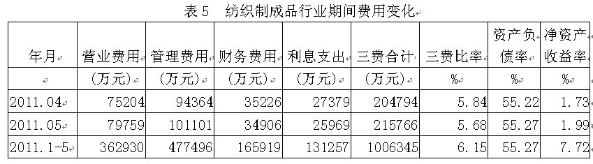 5紡織制成品行業(yè)期間費用變化