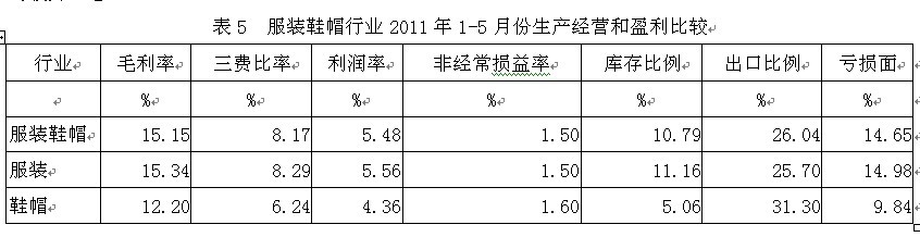 5服裝鞋帽行業(yè)生產(chǎn)經(jīng)營和盈利狀況