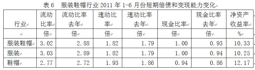 6服裝鞋帽行業(yè)短期償債和變現(xiàn)能力變化