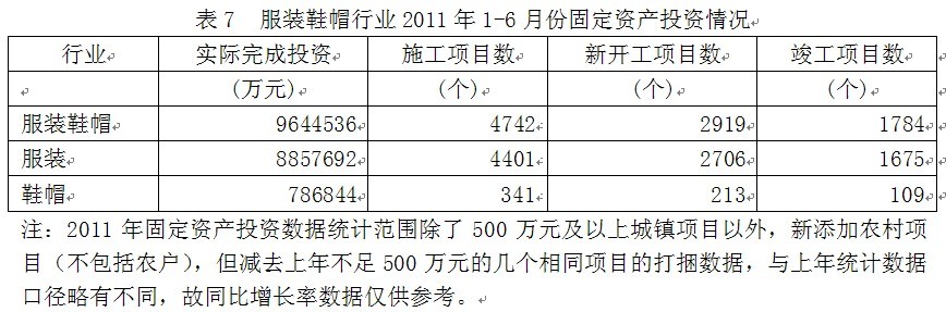 7服裝鞋帽行業(yè)固定資產(chǎn)投資情況