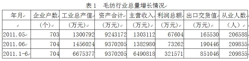 1毛紡行業(yè)總量增長情況