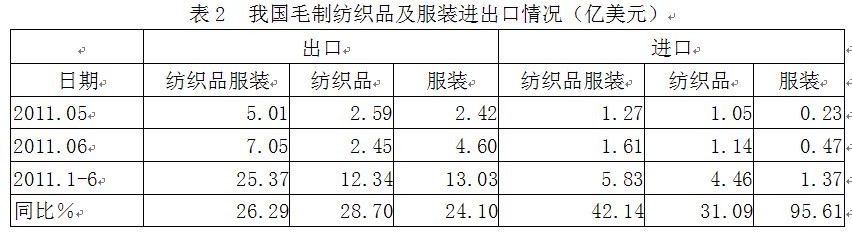 2毛制紡織品服裝進(jìn)出口情況