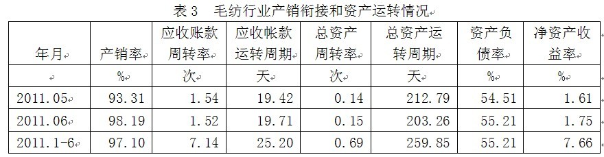 3毛紡行業(yè)產(chǎn)銷銜接和資產(chǎn)運(yùn)轉(zhuǎn)情況