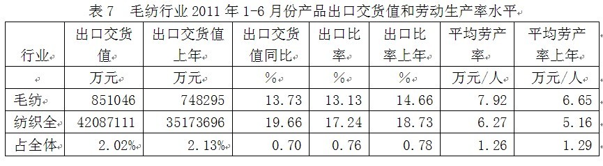 7毛紡行業(yè)產(chǎn)品出口交貨值和勞動生產(chǎn)率水平