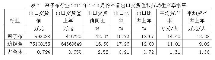 7簾子布行業(yè)產品出口交貨值和勞動生產率水平