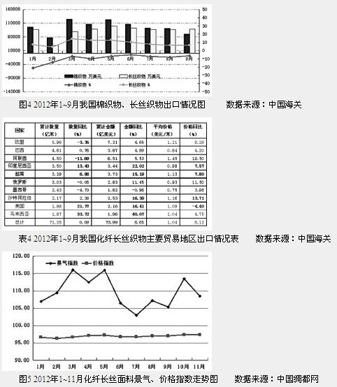 2012下半年以來,我國化纖長絲織造企業(yè)已逐步從年初突然面對復雜經(jīng)濟形勢的慌亂中走出,并逐步過渡到相對平穩(wěn)的調(diào)整時期。雖然全球經(jīng)濟未見回暖,但企業(yè)已做好非常時期苦練內(nèi)功的準備。 行業(yè)經(jīng)濟未現(xiàn)好轉(zhuǎn) 產(chǎn)量首現(xiàn)零增長,集群表現(xiàn)差異明顯 2012年1~9月我國主要化纖長絲織造產(chǎn)業(yè)集群地盛澤、長興、秀州、龍湖四地合計累計生產(chǎn)化纖長絲機織布142.1億米,同比下降0.03%。其中盛澤地區(qū)受市場影響嚴重,加之冬季來臨,仿真絲類產(chǎn)品不再走俏,化纖長絲機織布產(chǎn)量同比下降明顯,為-8.09%;長興地區(qū)則由于產(chǎn)品大路貨居多,能承受一定庫存,因此當?shù)仄髽I(yè)沒有特意減產(chǎn),而是保持了9.41%的增長速度;秀州地區(qū)受當?shù)亟?jīng)濟政策環(huán)境影響,生產(chǎn)增長乏力,產(chǎn)量與去年同期持平;龍湖地區(qū)則因其產(chǎn)品以受到市場追捧的細旦高密輕薄類面料居多而保持了一個相對較好的增長態(tài)勢。 從表2可以看出,截至9月,我國主要化纖長絲織造產(chǎn)業(yè)集群地合計利潤總額已出現(xiàn)負增長,同比下降近17%。盛澤地區(qū)盡管有超過100%的產(chǎn)銷率,但利潤總額同比下降最為明顯,已超過40%,這表明該地區(qū)在生產(chǎn)上堅持以銷定產(chǎn),并在努力消化庫存,但消化庫存的方式采用的是壓低價格,因此雖然出貨量大,但毫無利潤可言;與盛澤地區(qū)不同的是龍湖地區(qū)的產(chǎn)銷率并不高,只有96.3%,但因其產(chǎn)品檔次和附加值高,利潤率能夠保持在13%,雖比去年同期略有下降,但利潤總額還是保持了7.89%的增長率,成為四個主要集群地的唯一亮點。 銷售壓力仍大,庫存難以充分消化 據(jù)國家統(tǒng)計局數(shù)據(jù)顯示,2012年9月,我國規(guī)模以上化纖織造加工企業(yè)工業(yè)總產(chǎn)值累計達到891.39億元,同比增長7.34%;產(chǎn)銷率為96.43%,同比下降了1.8個百分點;企業(yè)銷售壓力沒有得到緩解,內(nèi)銷比率仍高達88.2%。 2012年1~9月我國化纖長絲織造業(yè)成品庫存累計達到72.76億元,同比增長19.06%。從圖1可以看出,與2011年相比,2012年化纖長絲織造業(yè)成品庫存始終在一個較高的水平,盡管5月的單月成品庫存為零增長,但也沒能改變庫存持續(xù)攀升的局面。 各項指標表現(xiàn)平淡,企業(yè)進入調(diào)整期 據(jù)國家統(tǒng)計局統(tǒng)計顯示,2012年9月我國化纖織造加工業(yè)主營業(yè)務收入累計達到852.92億元,同比增長3.91%;利潤總額累計為37.65億元,同比增長6.59%;利潤率為4.46%,同比增長0.11個百分點;行業(yè)虧損面為11.45%,虧損企業(yè)虧損額同比增長了80.17%。 從圖2可以看出,2012年3月以來我國化纖長絲織造產(chǎn)業(yè)主營業(yè)務收入的增長速度連續(xù)5個月下降,到9月才略有回升;利潤總額增速則從5月份開始連續(xù)4個月下降,9月份略有回升;在銷售持續(xù)低迷,利潤總額艱難增長的同時,利潤率卻從3月份開始連續(xù)6個月小幅攀升,9月略有下降。 2012年9月,我國化纖長絲織造行業(yè)虧損已持續(xù)了7個月的小幅下滑,達到11.45%;虧損額的增長速度也從6月最高峰的114.39%快速回落到80.17%。 外需仍將低迷 化纖長絲織物依靠價格保持了出口額的增長,但實際出口環(huán)境堪憂 2012年1~9月,我國紡織織物累計出口229.36億美元,同比下降2.04%;棉織物累計出口91.54億美元,同比下降6.1%;化纖長絲織物累計出口74.03億美元,同比增長6.6%。從出口額來看,化纖長絲織物仍是我國各類紡織織物中唯一保持出口額增長的產(chǎn)品。 盡管如此,從圖4可以看出,5月份以后,我國化纖長絲織物單月出口額也呈現(xiàn)出明顯的遞減趨勢,增長速度也在逐步下滑;棉織物的出口情況同樣不理想,單月出口額連續(xù)下滑,使得累計出口額始終沒能突破負增長,這表明外需仍未見明顯起色。 主要出口市場未見明顯復蘇 從主要貿(mào)易地區(qū)來看,2012年1~9月我國化纖長絲織物對各主要貿(mào)易地區(qū)的出口情況無明顯好轉(zhuǎn)。具體來看,對印度尼西亞和越南的出口保持平穩(wěn)增長,出口金額同比分別增長22.02%和15.19%;對沙特阿拉伯的出口主要依托價格的攀升,出口金額同比增長16.39%;對美國的出口則主要依托數(shù)量的增長,出口金額同比增長16.41%。 可喜的是,2012年1~9月,美國進口長絲織物總量同比增長22.96%,其中中國產(chǎn)品進口量同比增長51.85%。這使得中國產(chǎn)品在美國進口化纖長絲織物總量占到了54.47%,比去年同期提高了18.6個百分點。值得注意的是,美國從加拿大、日本等國進口的長絲織物數(shù)量雖然不多,但價格卻是我國產(chǎn)品的3倍。 內(nèi)銷市場波動 從圖5可以看出,2012年化纖長絲織物的內(nèi)銷價格非常平穩(wěn),但這并不是一種供需平衡的平穩(wěn),而是需求極度疲軟帶來供過于求之后,產(chǎn)品價格低至成本線后的平穩(wěn),因此這種平穩(wěn)是市場不景氣的表現(xiàn)。盡管如此,企業(yè)在面對冷清市場的同時仍然懷揣著希望,但信心又極易受到外界環(huán)境的影響,因此全年市場景氣指數(shù)波動較大。 圖6顯示的是2012年5月以后東方絲綢市場成交情況,5月短暫的銷售高峰過后,成交量在6月中旬跌入低谷,之后開始以極其緩慢的速度爬升,到11月也沒有出現(xiàn)明顯增長。 從棉價看長絲織物市場空間 從圖