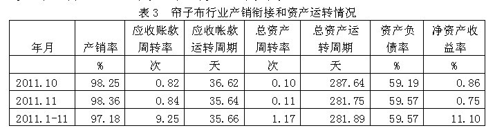 3簾子布行業(yè)產(chǎn)銷銜接和資產(chǎn)運(yùn)轉(zhuǎn)情況