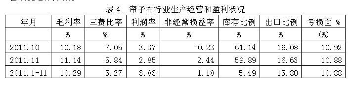 2011年1-11月簾子布行業(yè)經(jīng)濟(jì)運(yùn)行分析