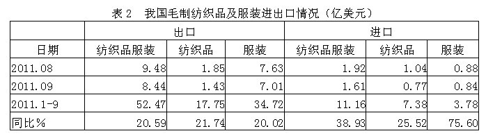 2毛制紡織品服裝進(jìn)出口情況
