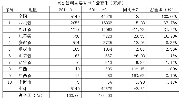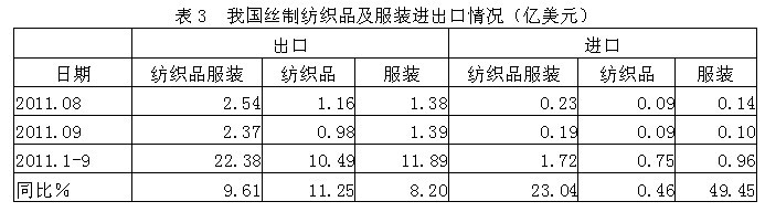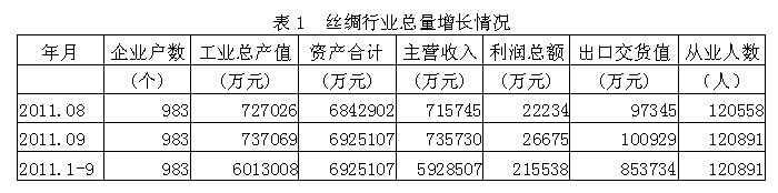 2011年1-9月絲綢行業(yè)經(jīng)濟(jì)運(yùn)行分析