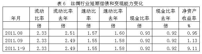 6絲綢行業(yè)短期償債和變現(xiàn)能力變化