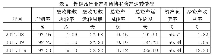 4針織品行業(yè)產(chǎn)銷銜接和資產(chǎn)運轉(zhuǎn)情況