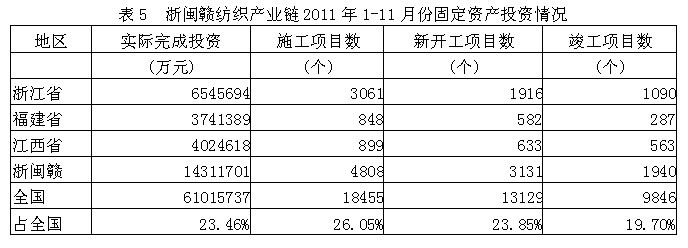 5浙閩贛紡織產(chǎn)業(yè)鏈固定資產(chǎn)投資情況