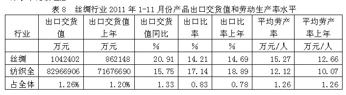 8絲綢行業(yè)產品出口交貨值和勞動生產率水平