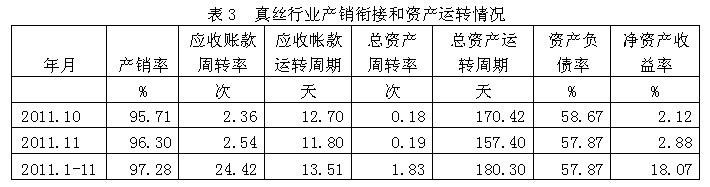 3真絲行業(yè)產銷銜接和資產運轉情況