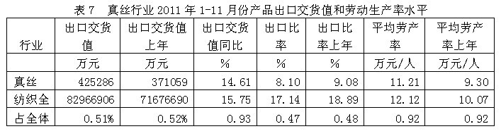 7真絲行業(yè)產品出口交貨值和勞動生產率水平