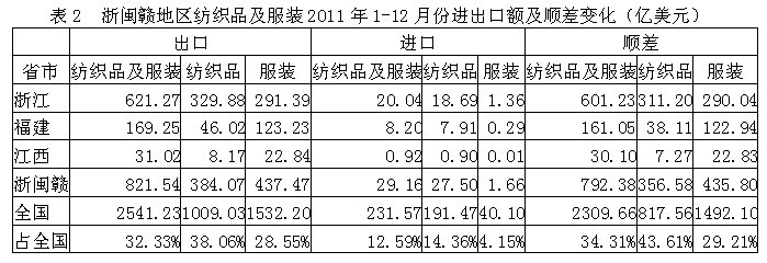 2浙閩贛紡織品服裝進(jìn)出口變化