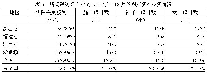 5浙閩贛紡織產(chǎn)業(yè)鏈固定資產(chǎn)投資情況