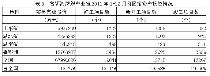 5魯鄂湘紡織產(chǎn)業(yè)鏈固定資產(chǎn)投資情況