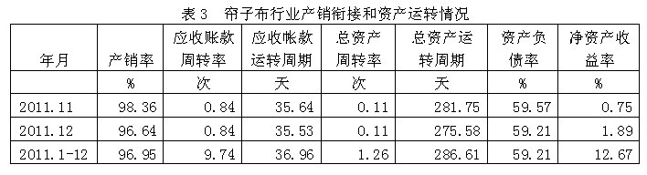 3簾子布行業(yè)產(chǎn)銷銜接和資產(chǎn)運轉情況