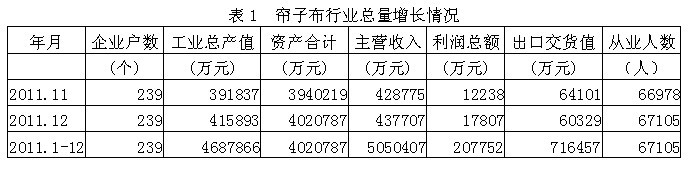 2011年1-12月簾子布行業(yè)經(jīng)濟運行分析