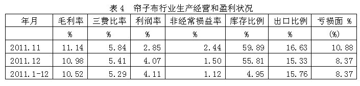 4簾子布行業(yè)生產(chǎn)經(jīng)營和盈利狀況