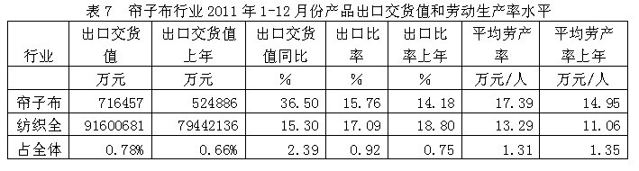 7簾子布行業(yè)產(chǎn)品出口交貨值和勞動生產(chǎn)率水平